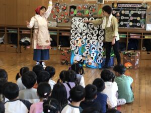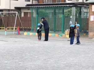 交通安全教室 更新日:2025年10月31日 きく組が交通安全教室に参加しました。 道路の歩き方や横断歩道の渡り方、シートベルトの必要性などを交通ヘルパーさんによる劇で学びました。 学んだことを2日目に園庭で実践しました。