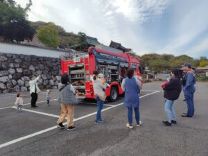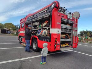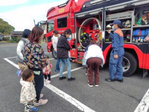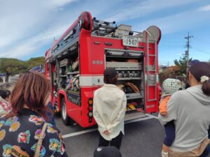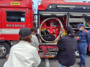 そのあと消防車の装備品を見せてもらったり、触らせてもらったり、