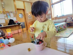 可愛いカップツリーを作ったり、ベビーマッサージを体験したりと親子で楽しく過ごしていただきました(*’ω’*)