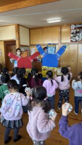 みんなで大きな声で「鬼は〜そと〜‼︎」をしました