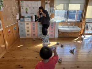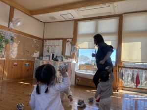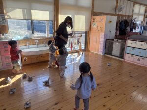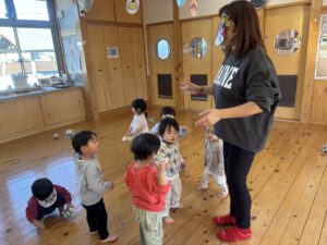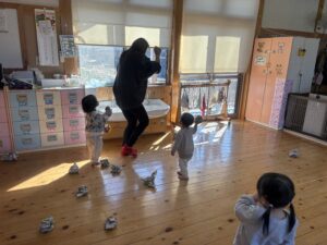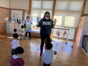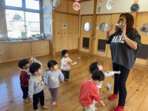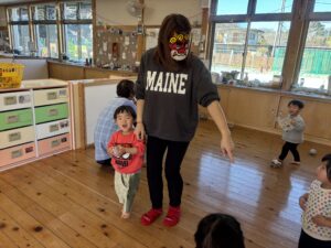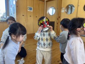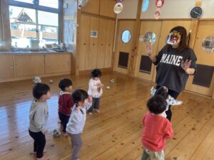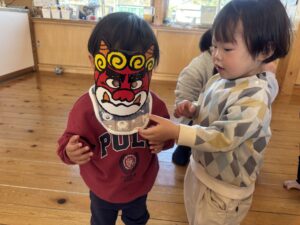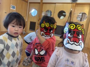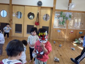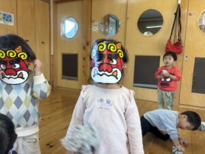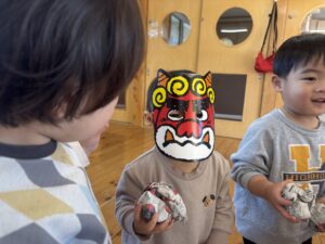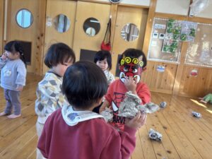 節分を2/3に 行いました!担任だとわかりながらも怖がる児や、 逆にわかって笑いながら豆を投げてくる児等様々でしたが、行事に触れ楽しい時間が過ごせたようです♪