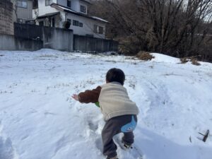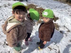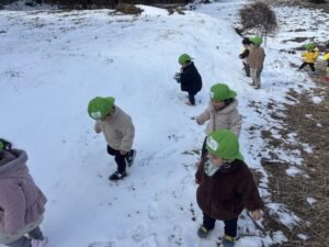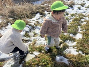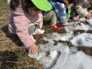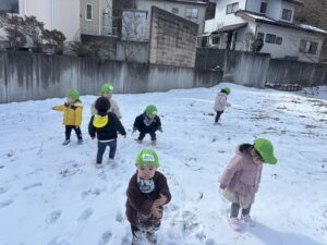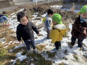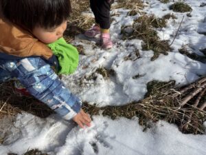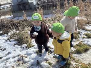 冷たくて嫌がっていた児も真っ白な雪をみると嬉しそうに触っていました🎵