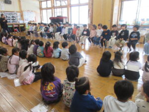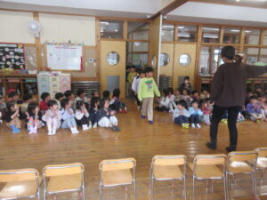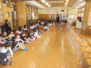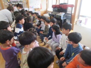 いよいよ、きく組さんの自己紹介・小学校名・将来の夢の発表・・・