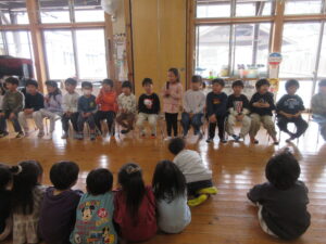 きく組さんからも歌のプレゼント「さよならぼくたちの保育園」涙を流しながら歌う子や一生懸命大きな声で歌う子。