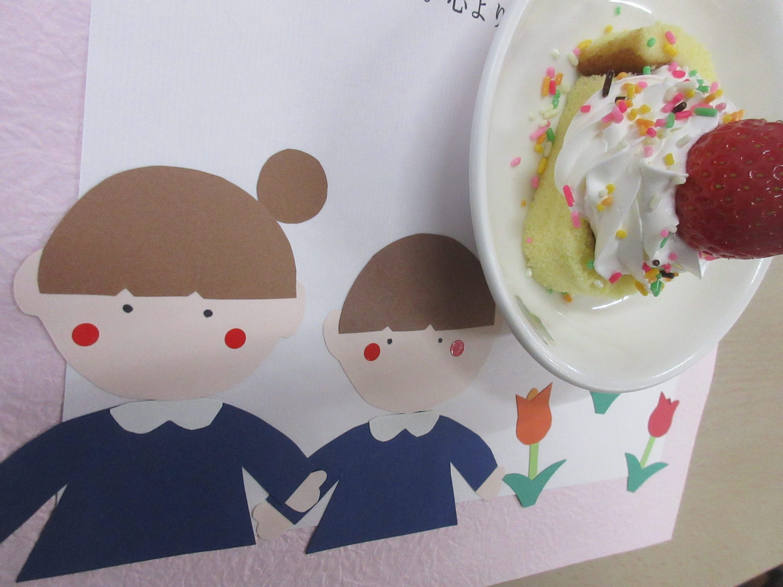 最後は、3・4歳児のお友だちが作ってくれた写真のプレゼントを渡してギューとしたり手を繋いだり思い思い過ごしていました!